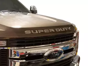 Letters spaced correctly for easy application. Includes pre-applied automotive tape for easy installation. Hood Badge - SuperDuty Lettering, Black Platinum.