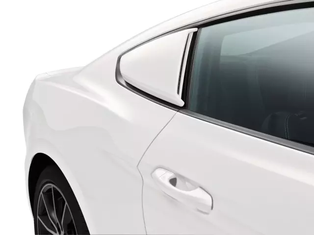 Scoops - Quarter Window, White Platinum. Developed specifically for the Mustang- these scoop kits add a personalized- custom appearance. The faux honeycomb grilles add to the muscular look. Pre-painted Satin Black and ready to install. Can be painted to match or complement your cars finish. Rugged polyurethane construction. Easy- no drill installation Mustang.