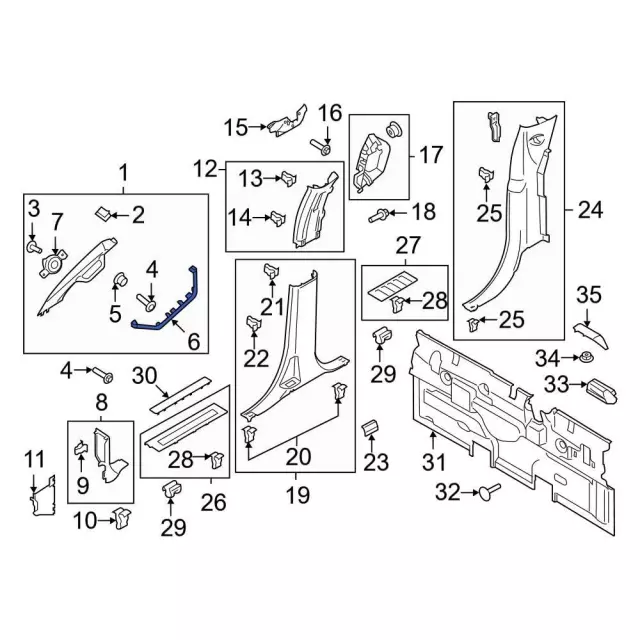 - Notes: Included with windshield pillar trim.